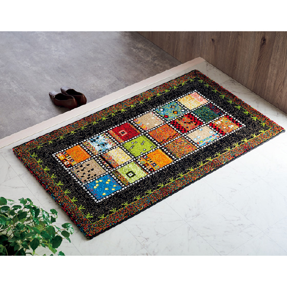 色鮮やかなギャベ調柄をウィルトン織で表現した緻密な美しさ。