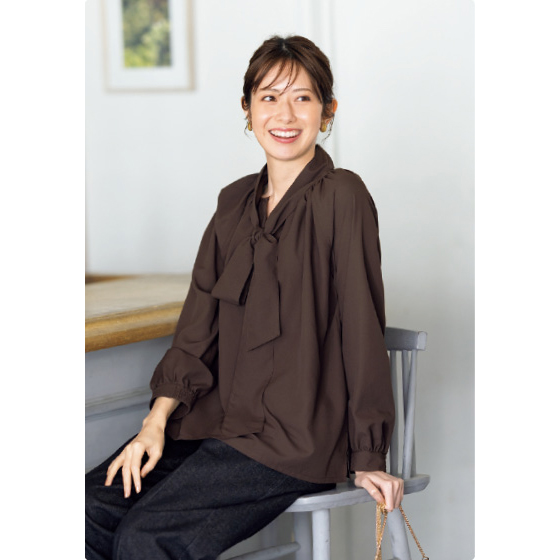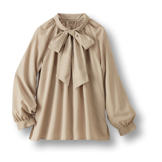 ボータイを付ければ華やか、外せばシンプル顔に。コットンのようなやわらかな肌触りで、多機能なのもうれしいポイント。