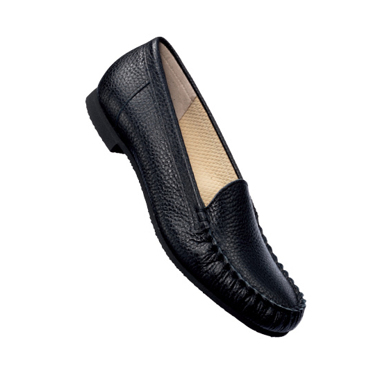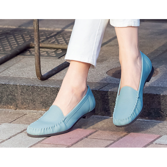 ボトムスを選ばないシンプルデザイン。中敷全面クッションのやさしい足当たりで、疲れにくさもポイント。
