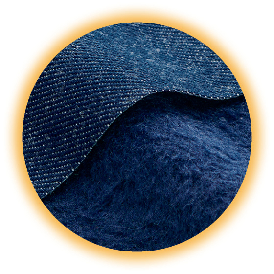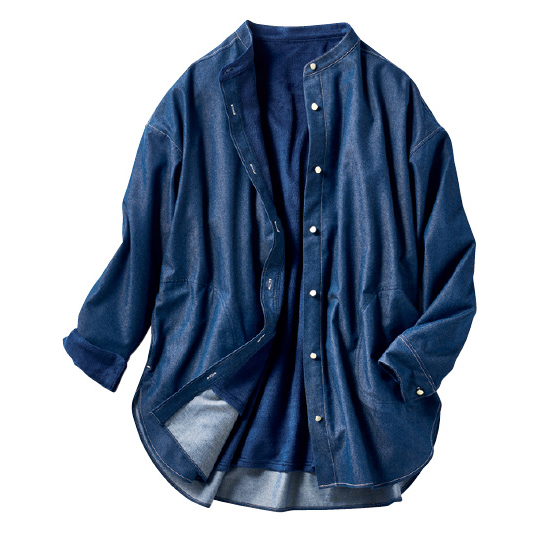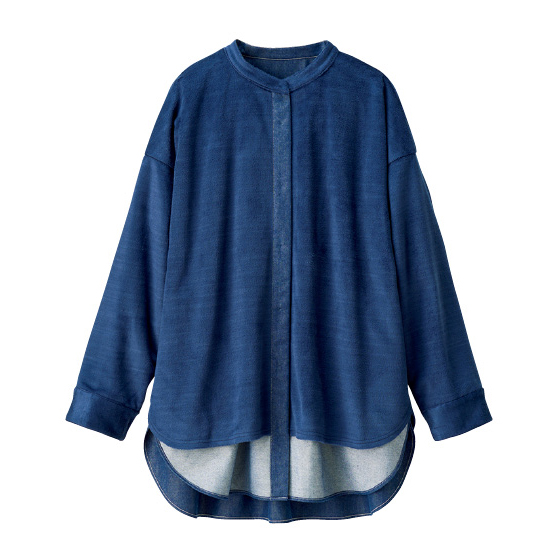 やわらかなデニム調素材。衿から袖口までフリース付きで、暖かさにすっぽり包まれます。ゆったりとしたサイズ感で着ぶくれしにくく、冬でもデニムのおしゃれを快適に楽しめます。