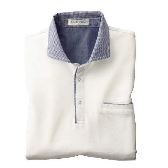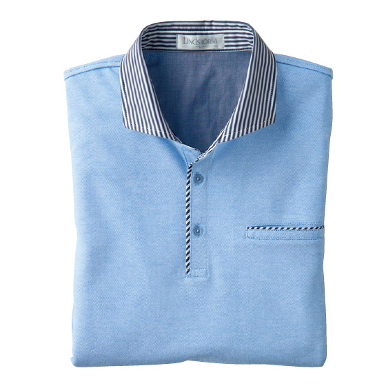 衿や袖口裏に生地をあしらって、ポロの着心地にシャツのきちんと感をプラス。7分袖はカフス仕立てで落ち着いた雰囲気です。半袖は袖口を折り返すと、より軽快な印象に。