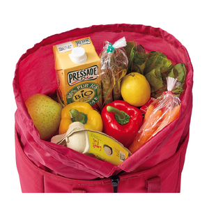 開口部が大きく、出し入れがスムーズ。巾着仕様だから、荷物が多少飛び出しても閉じられます。
