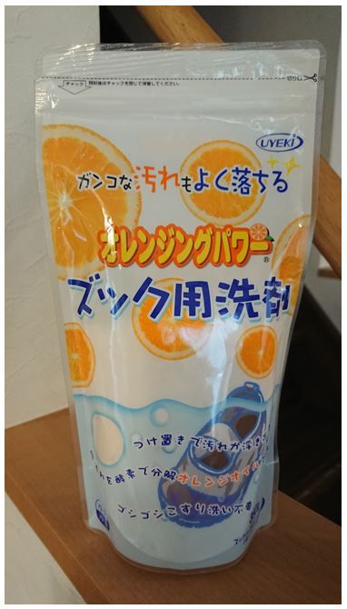 そこで、オレンジングパワー(R)ズック用洗剤(380g)を使ってみました!
