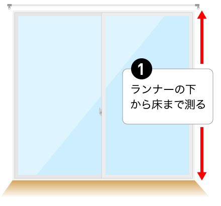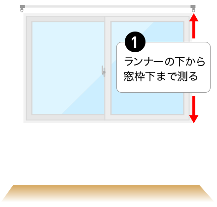 カーテンのランナーの下から窓の下までの長さを測ります。