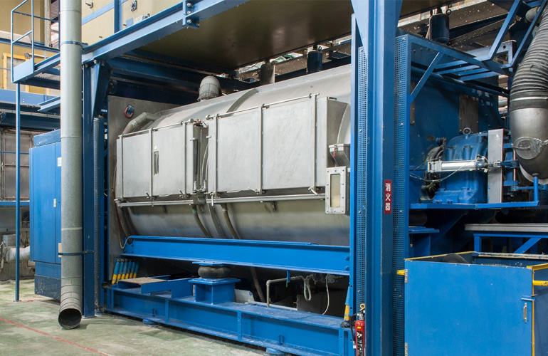 側地を切り裂いて取り出した羽毛を洗浄する機械。