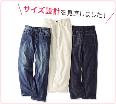 ご好評いただいている綿100%の軽くてやわらかなデニム生地やシルエットはそのままに、ウエストゴムやサイズ設計を再度細かく確認し、よりはき心地がよくなるようリニューアルしました!ぜひお試しください!