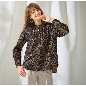 あったか身頃裏シャギー付き 小紋プリントブラウス