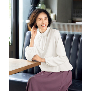 ギャザーと落ち感できれい見え。1枚で着映える冬ブラウス。