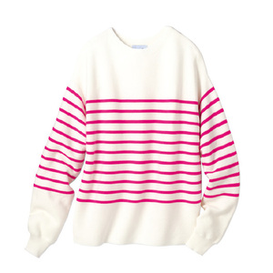 ふんわり綿カシミヤ 配色ニットプルオーバー