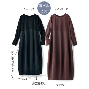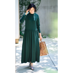 毛玉になりにくい マシュマロミラノリブ 袖布帛ワンピース