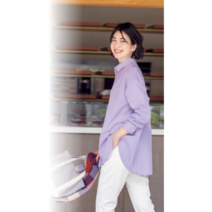 シワを抑える機能素材のシャツチュニック。