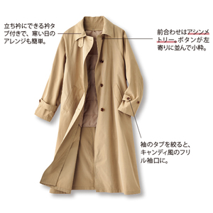 カジュアルが決まるステンカラーコートは、丸みのある衿でほんのりかわいく