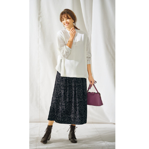 ニュアンスカラーで冬映え。やわらかスエード調スカート。