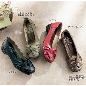 4E牛革外反母趾対応 リボンリングパンプスOB7851