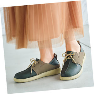 足元にやさしい風合いナチュラルシューズ。きちんと感のあるレースアップ