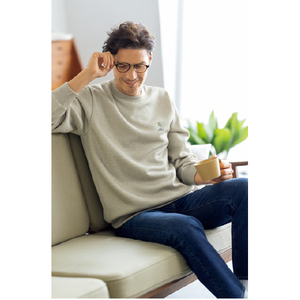 衿元のひと技でセンスアップ。裏起毛のあったかトレーナー