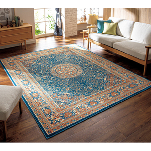 光沢あるペルシャ絨毯風の柄で格調高く。薄手ながらしっかり快適な踏み心地。