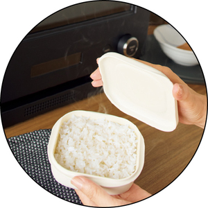 冷蔵庫保存からそのままレンジへ!耐熱セラミック製スリムおひつ。