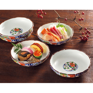 5枚揃いの古伊万里調柄が、さりげない品のよさ。