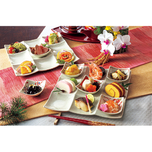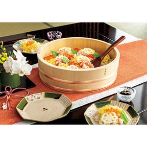 縁起のよい八角に趣ある手描き絵。料理が映える志野織部の器。