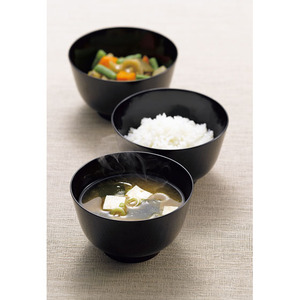 小さな力でちゃんと持てる持ち手付き。レンジもOKの上品漆器。