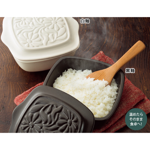温め直したご飯も旨い、萬古焼の趣漂うおひつ。