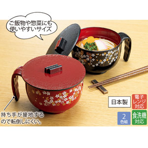 山中塗 蓋付きらくらく汁椀 「桜」(2色組)