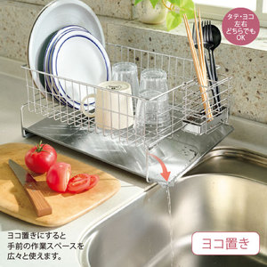 置くスペースを選ばない水切り。自然に流れて水捨ても不要!