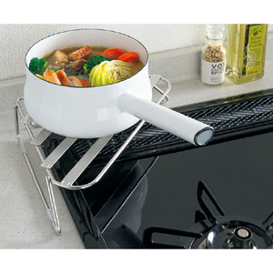 調理中の重い鍋が置ける頑丈ラック。汚れやすい排気口も同時にカバー。