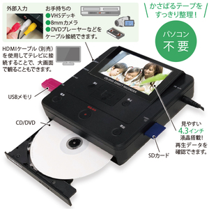 簡単操作で、昔のビデオを劣化前にダビング保存。