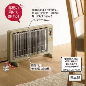 立ち上がりが早い特許技術の素材。遠赤グラファイトヒーター搭載。