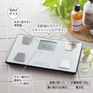 ●材質/本体=ABS樹脂、天面=強化ガラス、電極=ステンレス鋼、脚=ポリエチレン