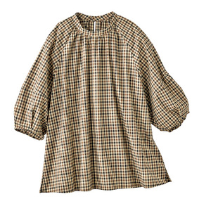 ふんわりチェック ギャザーブラウス