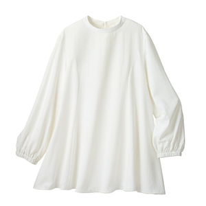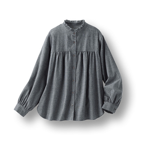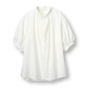 ふんわり袖の リネン混ちび衿シャツ