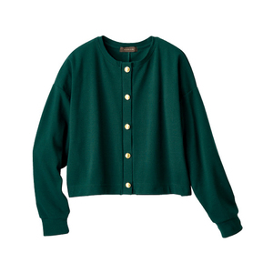 きちんと見えなカットソー素材の クロップドカーデジャケット