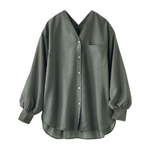 アイロンいらずの7分袖 リネン混バンドカラーシャツ