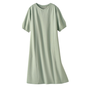 毛玉になりにくい マシュマロミラノリブ 袖布帛ワンピース