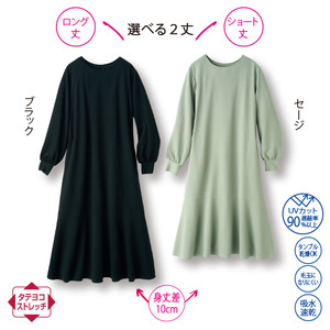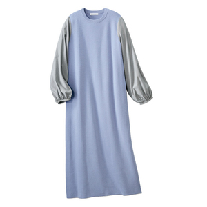 毛玉になりにくい マシュマロミラノリブ 袖布帛ワンピース