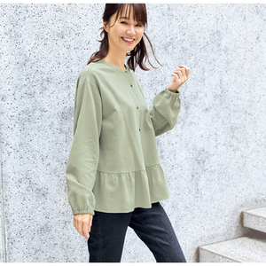 コットンとリネン素材で季節をつなぐ、ほの甘ペプラムブラウス。