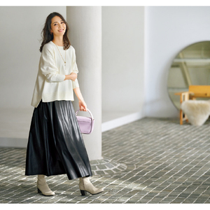 ウール見えするおとな生地。脚線カバーの美シルエット。