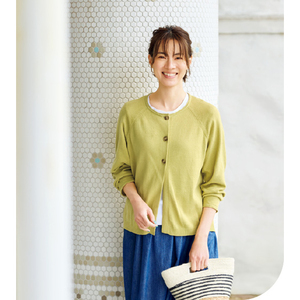 洗えるフレンチリネン混 ラグランカーディガンRN