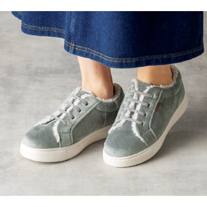ゴムひも使いで楽ちん。ふわもこスニーカー。