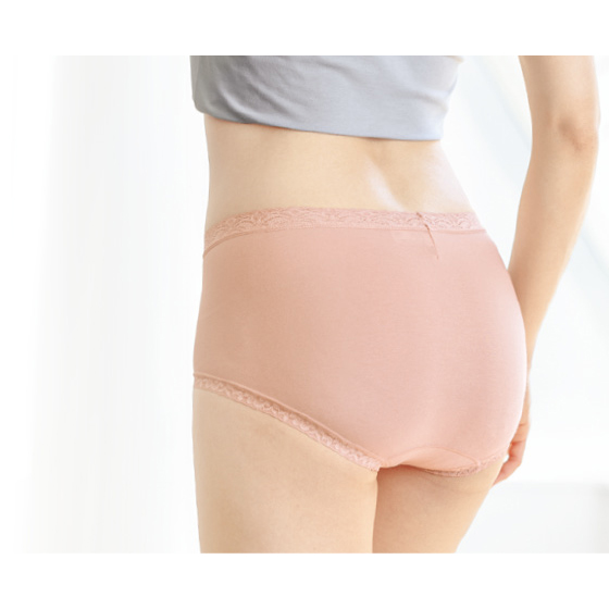 身生地はなめらかな綿混素材。やわらかく包み込まれるようなやさしいはき心地です。ストレッチ性が良く、深めのはきこみでおなかとヒップにぴったりフィットします。●マチ裏は綿混素材です。