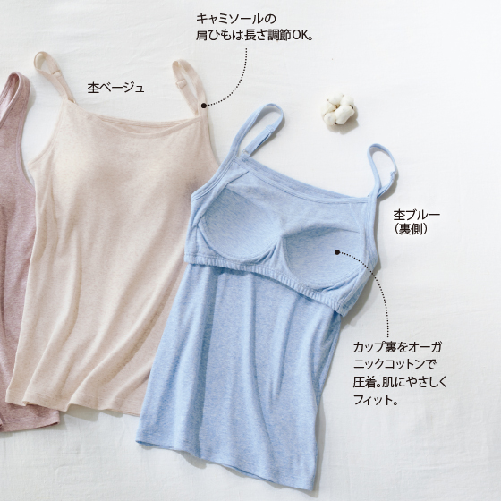 バストも肌もやさしく包む。綿100%でカップ付き。