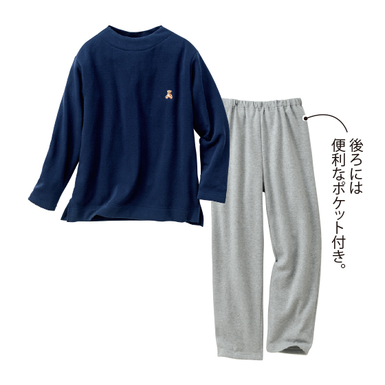 暖かいパジャマ兼部屋着です。刺繍もかわいい。3回位の洗濯で上着の方は毛玉できました。この素材は仕方ないのでしょうか…首元の仕様がやや苦しくかんじます。