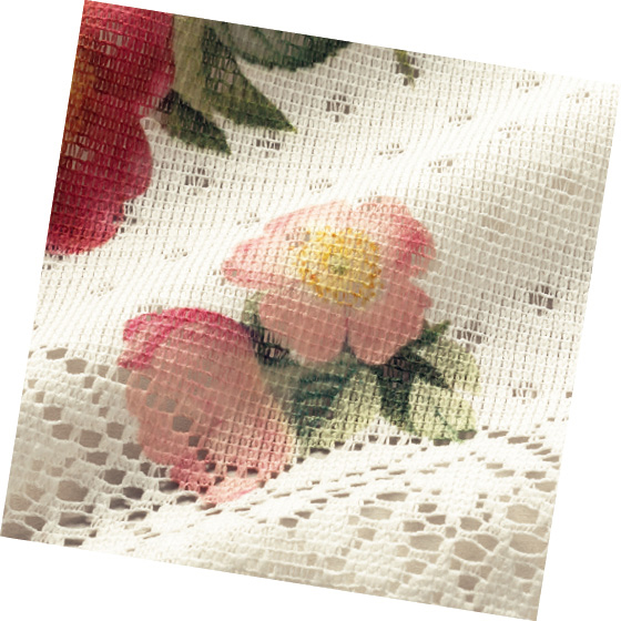 繊細なレース生地に美しい柄を鮮やかにプリント。