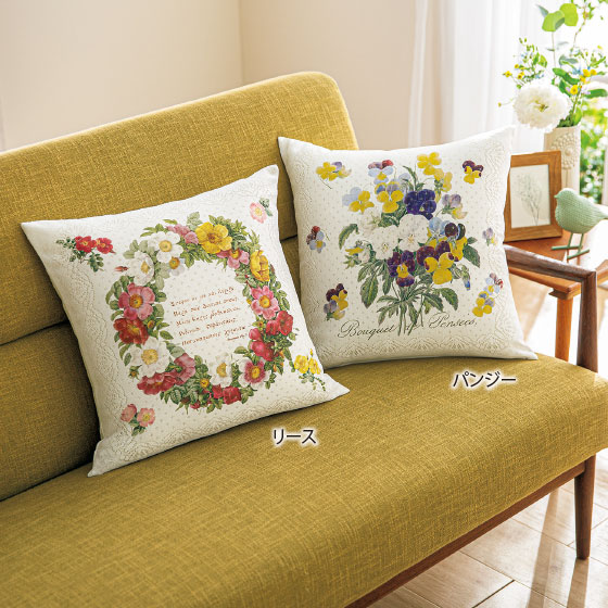 お部屋がパッと華やぐクッションカバー。表と裏で違う柄が楽しめます。