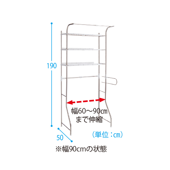 幅60〜90pまで伸縮します。