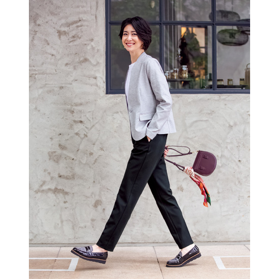 ごく肉厚で暖かく、肌なじみがなめらかな生地は、フランスの生地メーカー「Carreman社」が企画。大人向きの品のよさを感じさせる風合いで、コーデを格上げします。シルエットは心地よく安定するテーパード。大きな前ポケットが太ももの丸みをカバーし、4本のダーツでヒップをすっきり見せます。生地は布帛に見えて、実はストレッチニット素材。どんな動作にもぐんぐん伸び、戻りもよくてシルエットをきれいなままキープします。※着用シーズンは秋冬です。