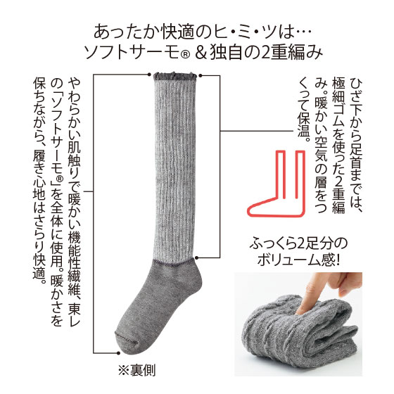 重ね履きのような暖かさ!ふんわり2重編みのハイソックス。